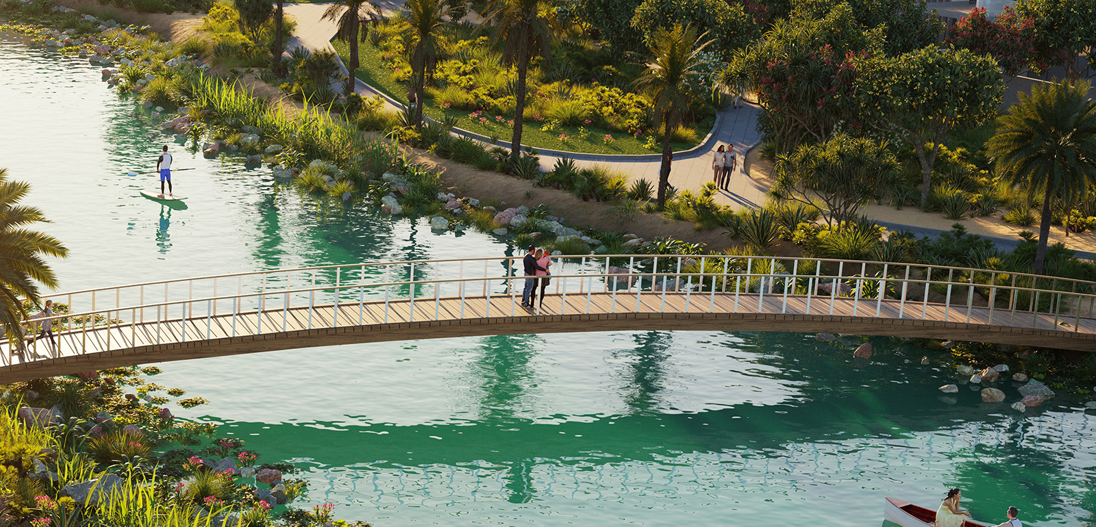 - Large-scale amenities: Malibu Beach, lazy river, wave simulator, outdoor cinema, petting farm, fishing lake, skate park, butterfly garden, bird aviary—the first in UAE :contentReference[oaicite:4]{index=4}