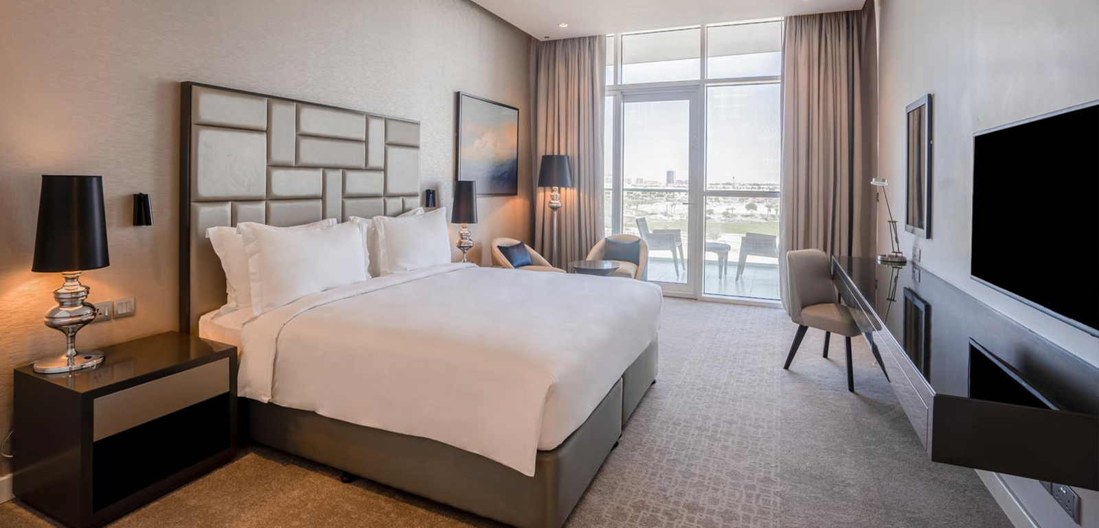 Whether you are in the city for business or visiting family in nearby Mudon, Motor City, or Sustainable city, we offer thoughtful amenities for a memorable stay. Our 481 stylish rooms and suites each feature a balcony with charming pool, park, desert, or golf course views. In your free time, head to the gym, visit our rejuvenating spa, or take a dip in one of our swimming pools for adults and children. We also offer four unique restaurants and bars to suit a variety of tastes.
